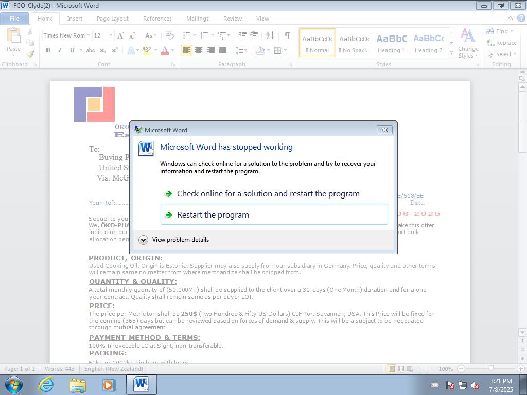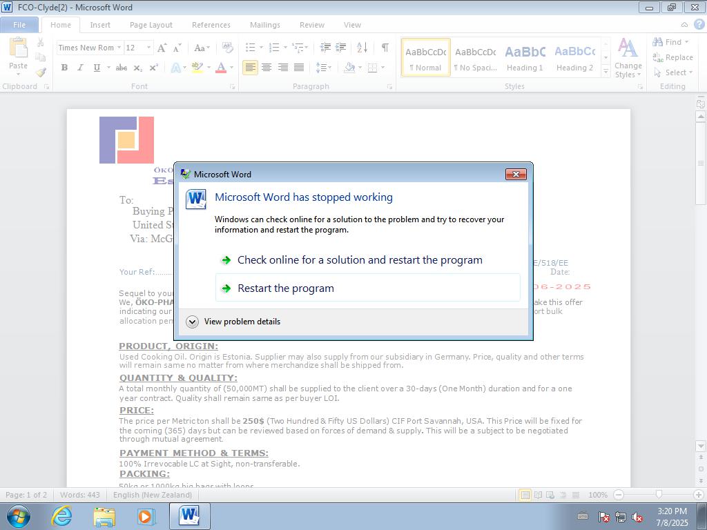 Application Crash | Process WINWORD.EXE with pid 2524 crashed |