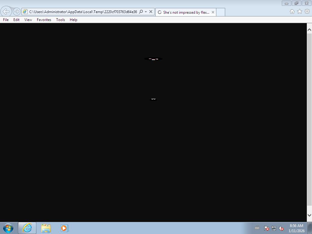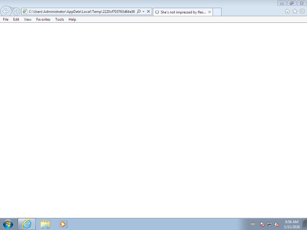2026-01-11 08:56:29,078 [lib.api.process] INFO: Successfully executed process from path 'C:\\Program Files\\Internet Explorer\\iexplore.exe' with arguments [u'C:\\Users\\ADMINI~1\\AppData\\Local\\Temp\\2220cf703763d64e36bcc8a4fa082d8b6ed4c3ca7c6ecaccf8983ca4cc67d7ea.html'] and pid 1768